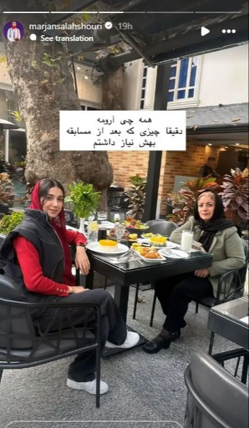 به گزارش نمابان و به نقل از هفت صبح، مرجان سلحشوری زاده 21 مهر 1375، اصفهان، تکواندوکار میباشد؛ تصویری از میز غذای بانوی تکواندو کار را در کنار مادرش مشاهده می کنید.