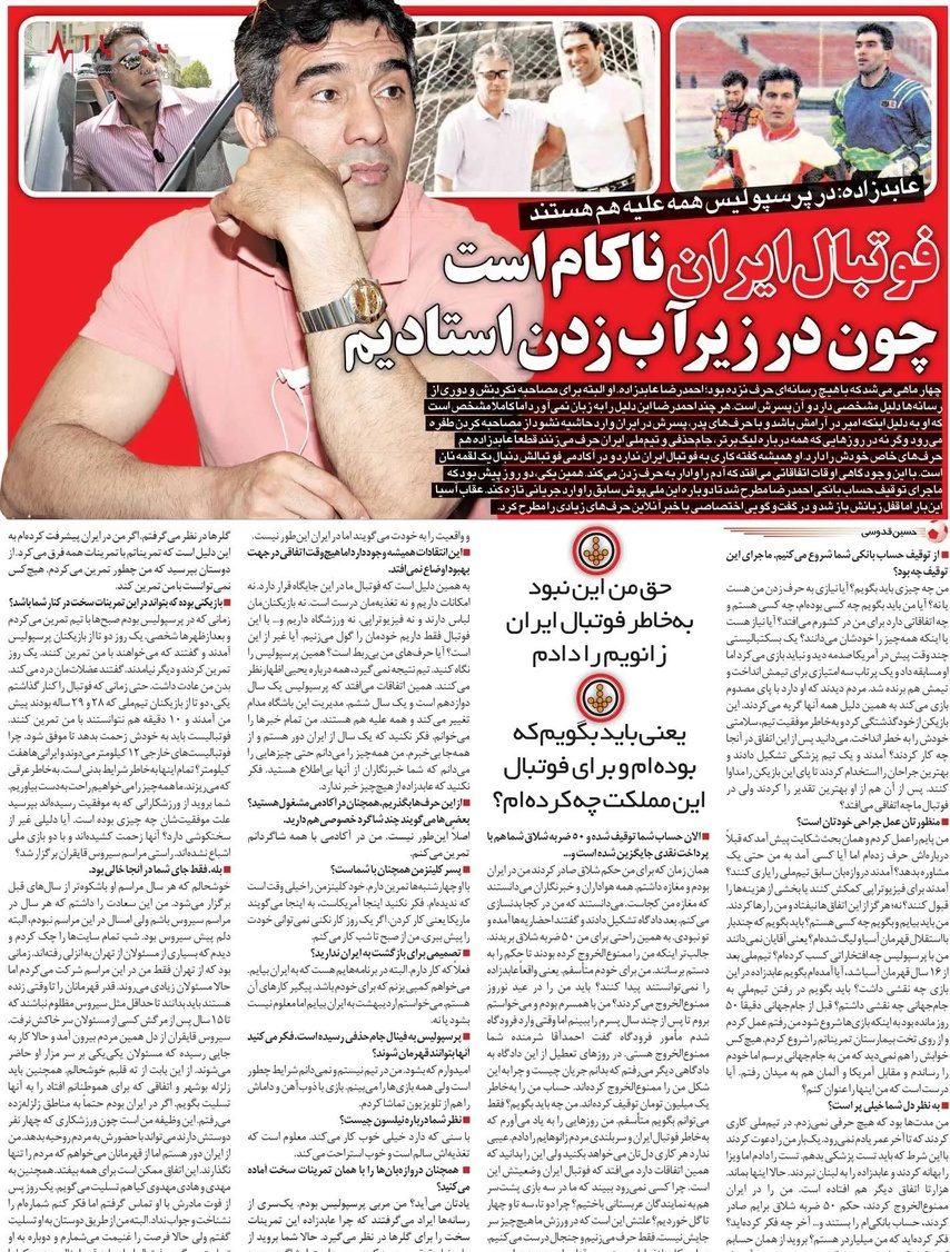 احمدرضا عابدزاده دروازهبان افسانهای ایران که خاطرات تلخ و شیرینی در ذهن مردم این سرزمین رقم زده نوروز سال 92 را با تلخی آغاز کرد.او که قصد داشت به همراه همسرش برای ملاقات فرزندش راهی خارج از کشور شود در فرودگاه با خبر ناگوار ممنوعالخروجی خود روبرو شد.این اتفاق آغاز ماجراهای تلخی برای عابدزاده بود که در گفتوگویی ابعاد تازهای از آن را فاش کرد.