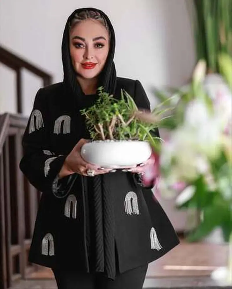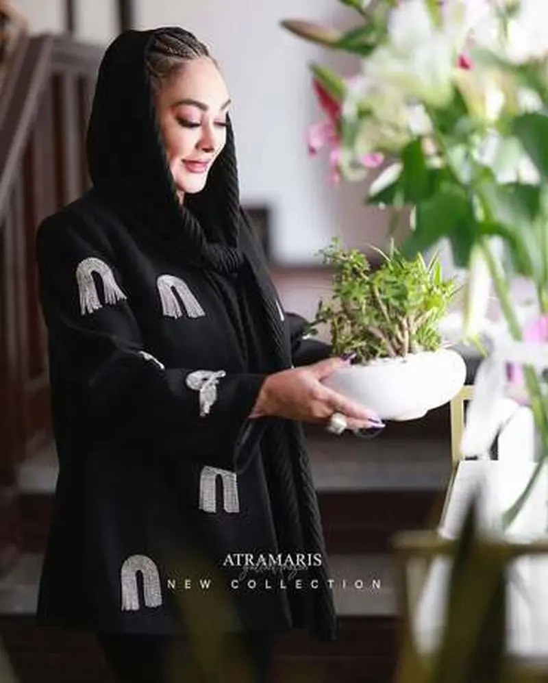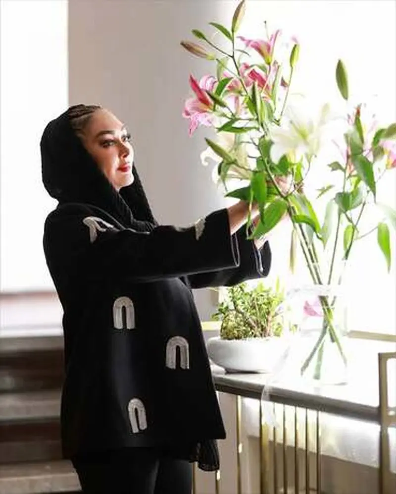 در این فوتوشوت خاص، الهام حمیدی با پوشیدن پالتوی مشکی کوتاه با طراحیهای منحصر به فرد، توجهها را به استایل شیک خود جلب کرده است. جزئیات خیرهکننده این پوشش با نگینهای درخشان به شکل <قوسهای زیبازینت داده شده بود و نشاندهنده جلوه خاص و باوقار این ستاره سینما است.