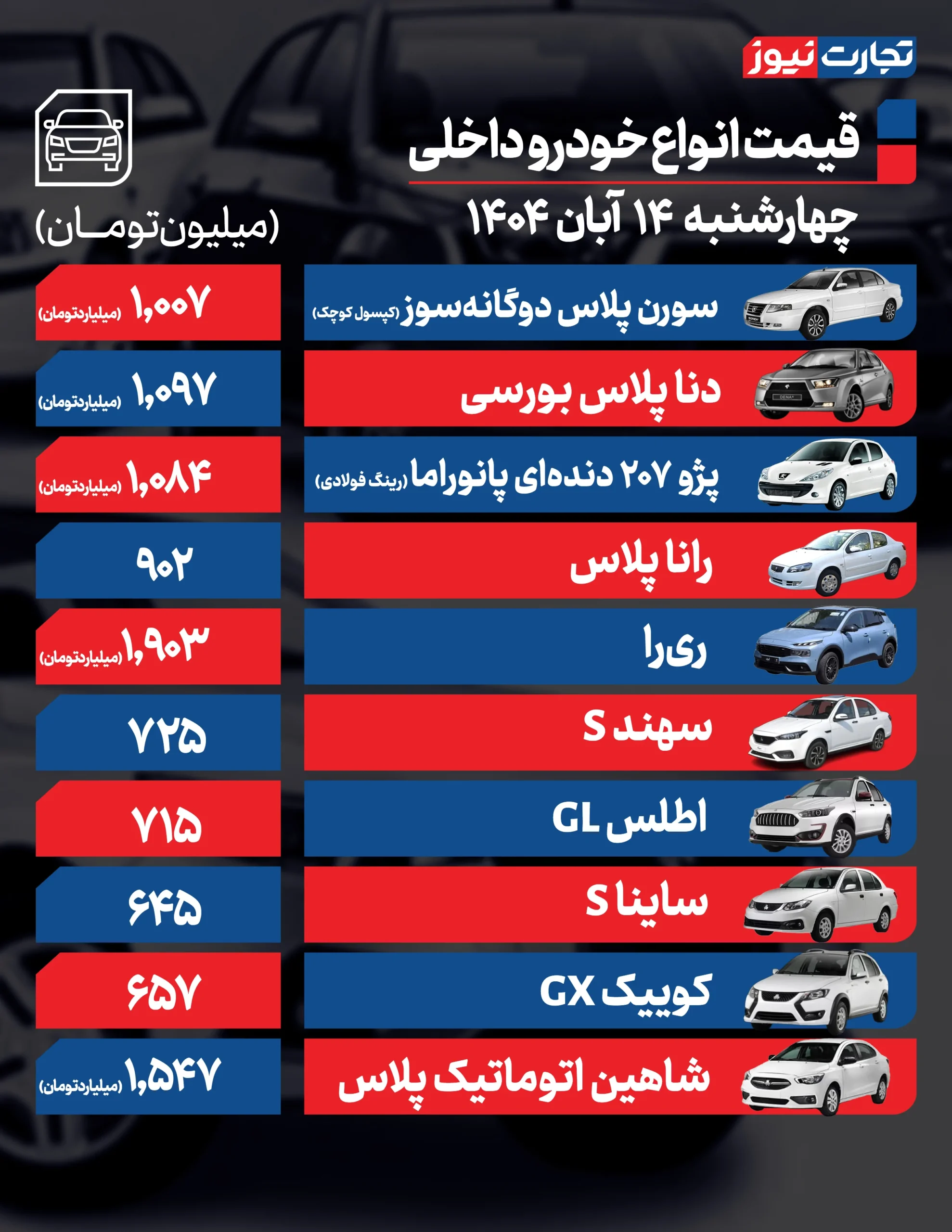 قیمت خودرو امروز ۱۴ آبان ۱۴۰۴ در شرایطی اعلام شد که بازار خودرو تحتتاثیر کاهش هیجانات ارزی و افت انتظارات تورمی کوتاهمدت، روندی آرام و با نوسان محدود را پشت سر میگذارد. بررسی رفتار معاملهگران در بازه هفت روز گذشته نشان میدهد که جریان عمومی معاملات در مسیر ثبات و تعدیل قیمتها قرار گرفته و سطح خرید و فروش نسبت به هفتههای گذشته کاهش محسوسی داشته است.