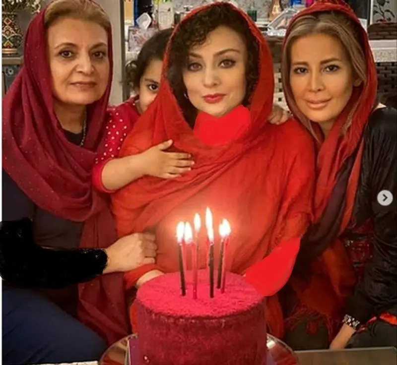 عکس تولد شاهانه یکتا ناصر با تم قرمز با حضور مادر و خواهرش را مشاهده میکنید.