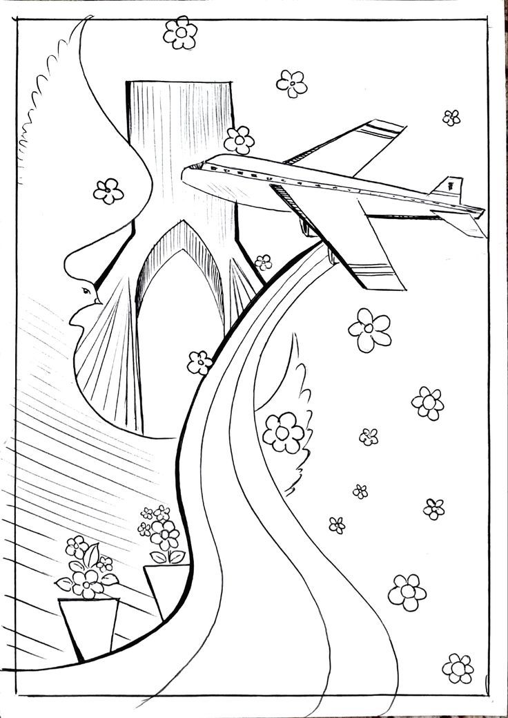 استفاده از پرچم ایران و هواپیما در نقاشی دهه فجر