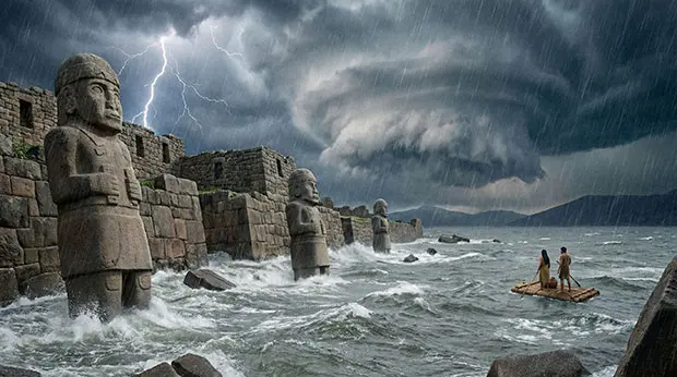 اساطیر اینکا از طوفانی به نام اونو پاچاکوتی یاد میکند که توسط خدای ویراکوچا برای نابودی مردمی در نزدیکی دریاچه تیتیکاکا فرستاده شد. این سیل ۶۰ شبانهروز ادامه داشت و ویراکوچا، پس از نابودی نژاد غولهای سرکش، تنها دو نفر را نجات داد تا بشریت از نو آغاز شود.