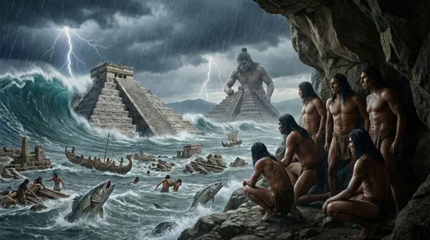 آزتکهای باستان از سیلی عظیم میگفتند که زمین را درنوردید. بسیاری از داستانهای سیل، با تفاوتهایی اندک، بر نابودی تمدن به دلیل مجازات الهی تأکید دارند. اساطیر آزتک بیان میکند ۴۸۰۰ سال پس از آفرینش، غولهایی در آناواک ساکن بودند که در سیل نابود یا به ماهی تبدیل شدند، به جز هفت نفر که به غارها پناه بردند. یکی از این غولها، زلوا، هرمی در چولولا ساخت.