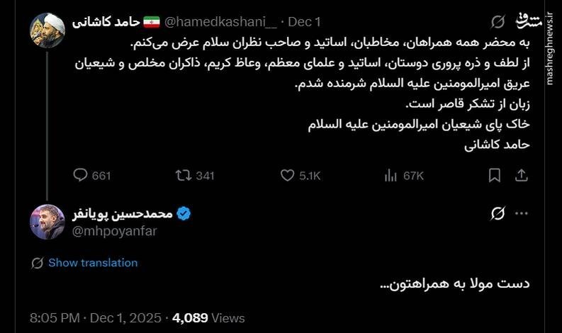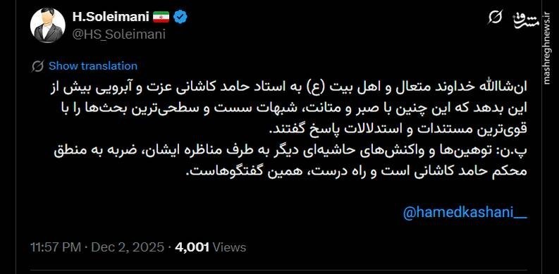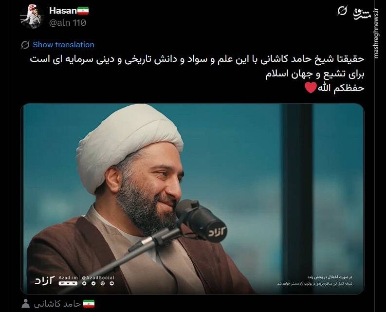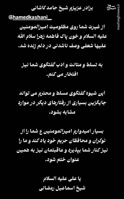 واکنشها و حمایت از حامد کاشانی را با هم مشاهده میکنیم: