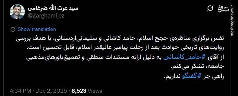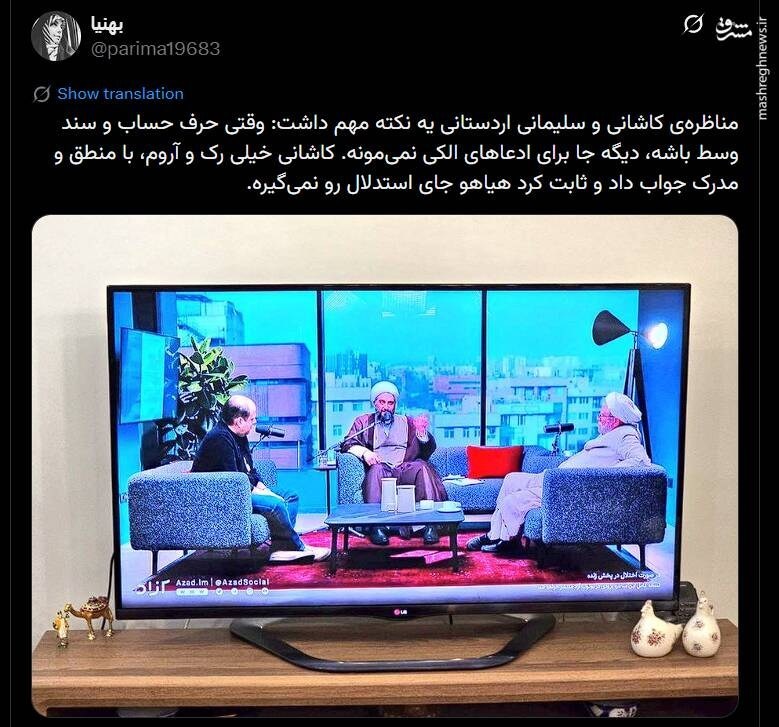 اقدام ارزشمند دیگر، آمادگی آقای کاشانی در ارائه دقیق منابع بود. ایشان علاوه بر همراهداشتن کتب مرتبط با موضوع، یک فایل PDF شامل مستندات، روایات تاریخی و منابع اصلی نیز ارائه کردند؛ اقدامی که کمتر مورد توجه افکار عمومی قرار گرفت.