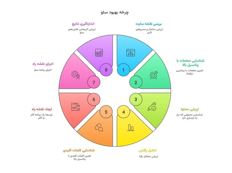 در این مرحله، نقشه کامل سایت بررسی میشود. مسیرهایی که کاربر در آن حرکت میکند، صفحاتی که بیشترین پتانسیل جذب ورودی را دارند، محتوایی که نیازمند بازسازی است و بخشهایی که رقبا روی آنها بهتر عمل کردهاند.