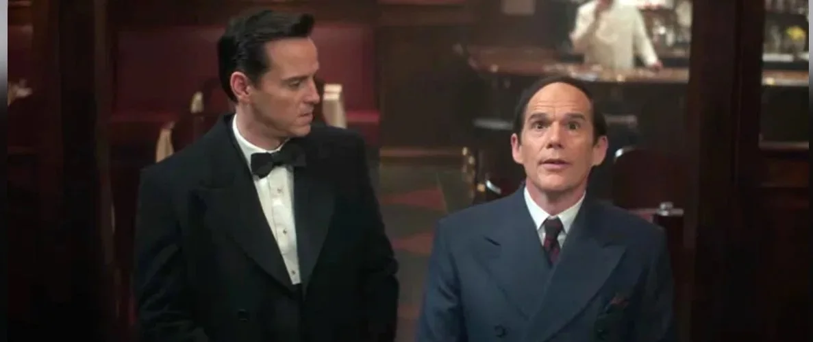 فیلم با یک کات مشخص وارد افتتاحیه تئاتر «اوکلاهاما!» میشود؛ شب بزرگداشت ریچارد راجرز پس از دوران همکاری طلاییشان با لورنز هارت. از همان ابتدا روشن است که این شب نه فقط بزرگداشتی رسمی، بلکه بازسازی نمادینی از گذشتهی این دو است؛ گذشتهای که اگرچه در تاریخ موسیقی آمریکا درخشان است، اما در زندگی شخصی لورنز چیزی جز سایهای طولانی باقی نگذاشته. ورود لورنز به رستوران ساردی -کمی مست، کمی آشفته و کاملاً بیحوصله- درست در نقطهی مقابل ورود ریچارد با آرامش، نظم و اعتمادبهنفس همیشگیاش است. این تضاد نه صرفاً یک اتمسفر، بلکه پایهی اصلی خوانش فیلم است: پیوندی هنری که در طول سالها پرفروغ بود، اما در سطح انسانی با ترکهایی پر شده که سالهاست لورنز توان پر کردنشان را ندارد. در همین فضای شلوغ، نخستین نشانهی فروپاشی شخصیت لورنز را میبینیم: نگاههای ناپایدارش به اطراف، اضطرابی زیرپوستی و نوعی بیجایگاهی که نمیتواند پنهانش کند. میهمانی به افتخار او و ریچارد است، اما هیچچیز در رفتار لورنز نشان نمیدهد که احساس تعلقی به آن داشته باشد.