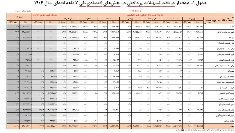 گفتنی است تسهیلات پرداختی 7 ماهه سال 1403 مبلغ 36716.5 هزار میلیارد ریال بوده است که با در نظر گرفتن تعدیلات صورت پذیرفته توسط شبکه بانکی به مبلغ 37447.8 هزار میلیارد ریال افزایش یافته است.