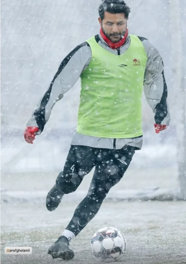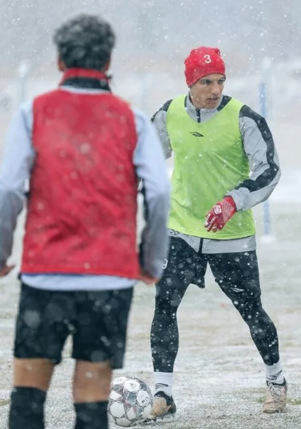 بازیکنان تیم تراکتور با وجود سرمای شدید و زمین برفی، تمرینات خود را با انگیزه و جدیت فوقالعادهای ادامه میدهند.