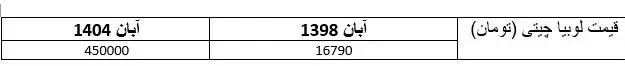 به گزارش خبرنگار اقتصادی نمابان و به نقل از خبرگزاری تسنیم؛ براساس گزارش مرکز آمار ایران، در حالی که قیمت لوبیا چیتی در آبان 1398 حدود 16 هزار و 800 تومان بوده است، در آبان سال 1404 به بیش از 450 هزار تومان رسیده است.