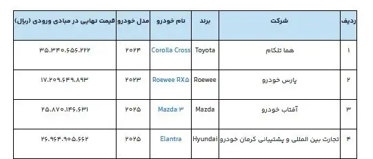 مشخصات خودرو های عرضه شده در سامانه یکپارچه