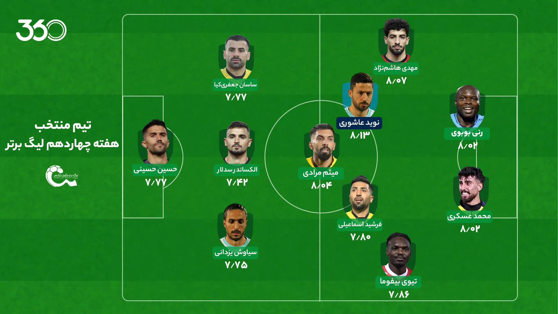 در ادامه، عملکرد بازیکنان حاضر در تیم منتخب «فوتبال 360» را با همکاری «متریکا» میخوانید.