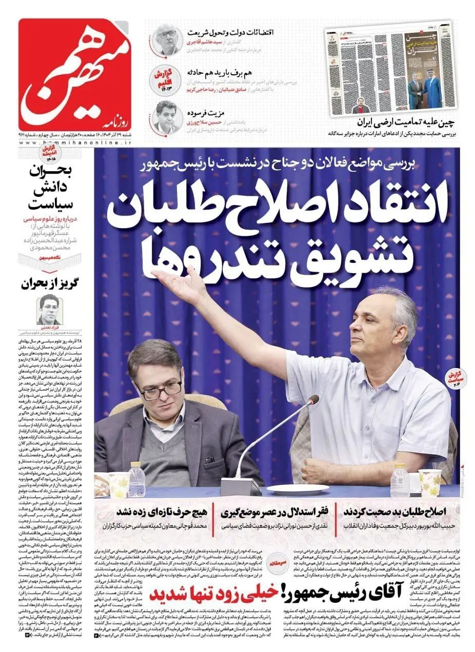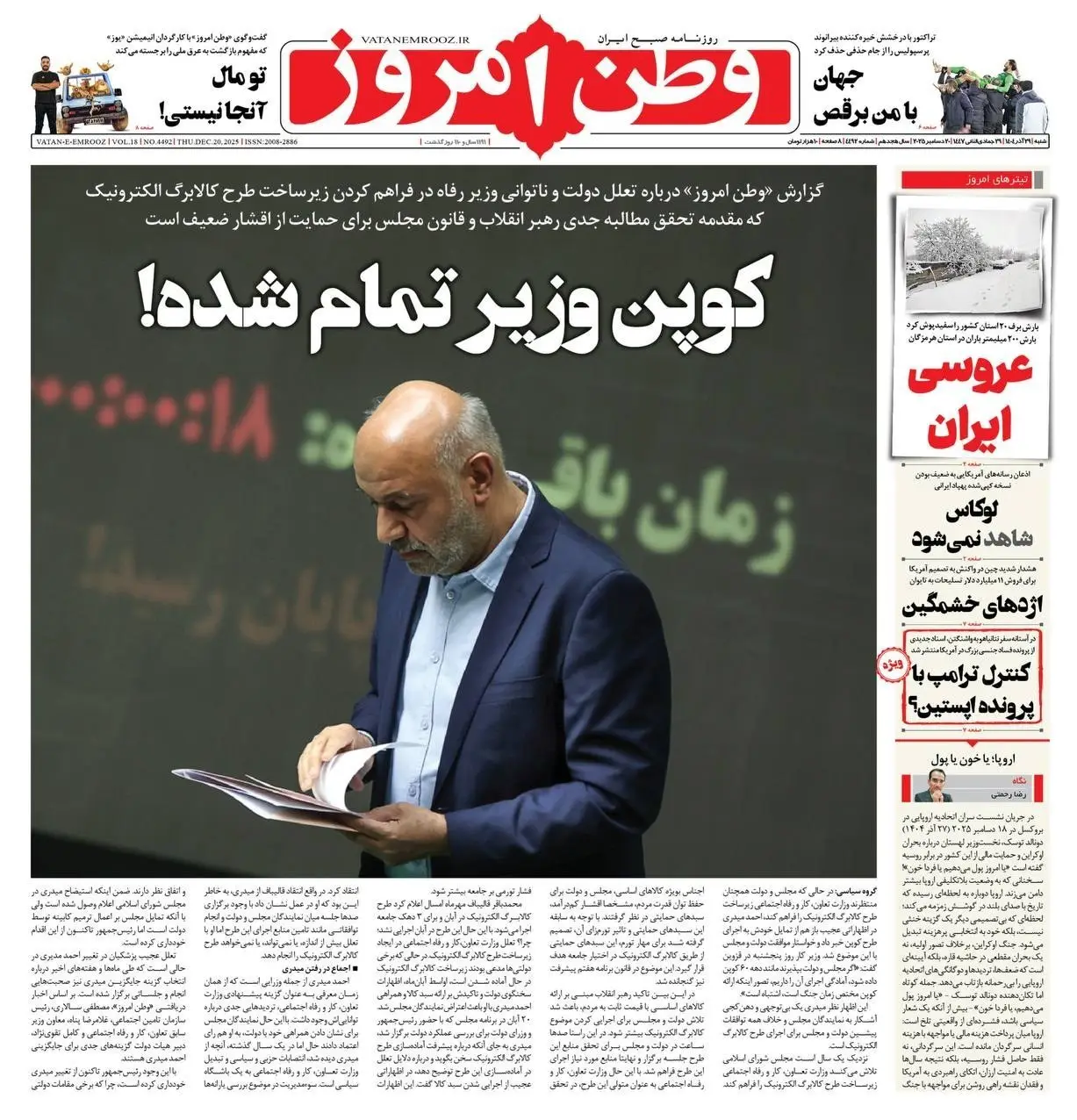 صفحه اول مطبوعات شنبه 29 آذر بازتابی از پایان ماجرای کوپن وزیر را به تصویر کشیده که توجه کاربران را جلب کرده است.