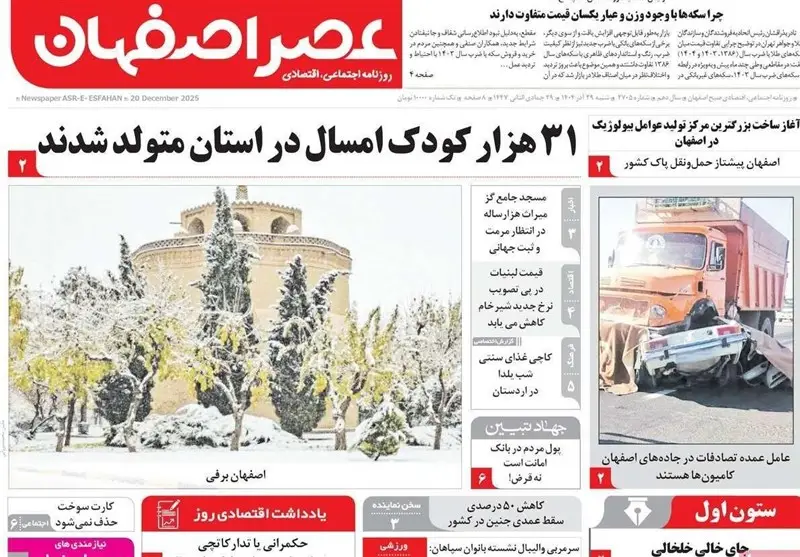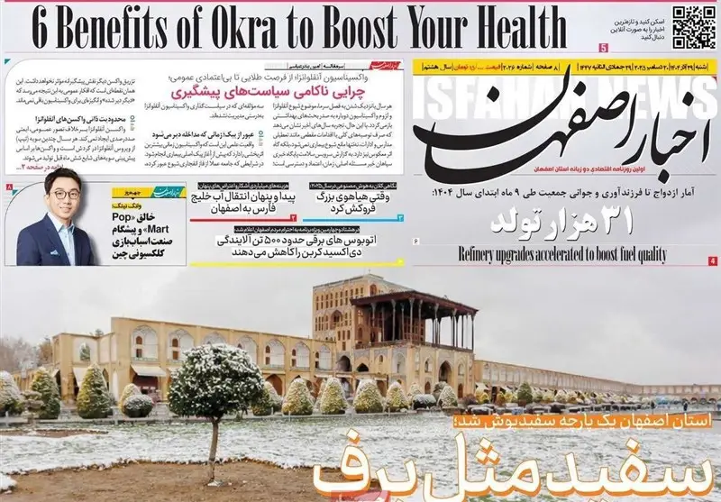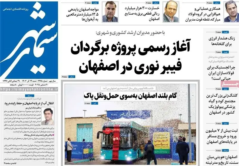تصاویر منتخب صفحات نخست روزنامههای استان اصفهان در 29 آذر، بازتابدهنده مهمترین اخبار و رویدادهای اجتماعی، سیاسی و اقتصادی این خطه است.