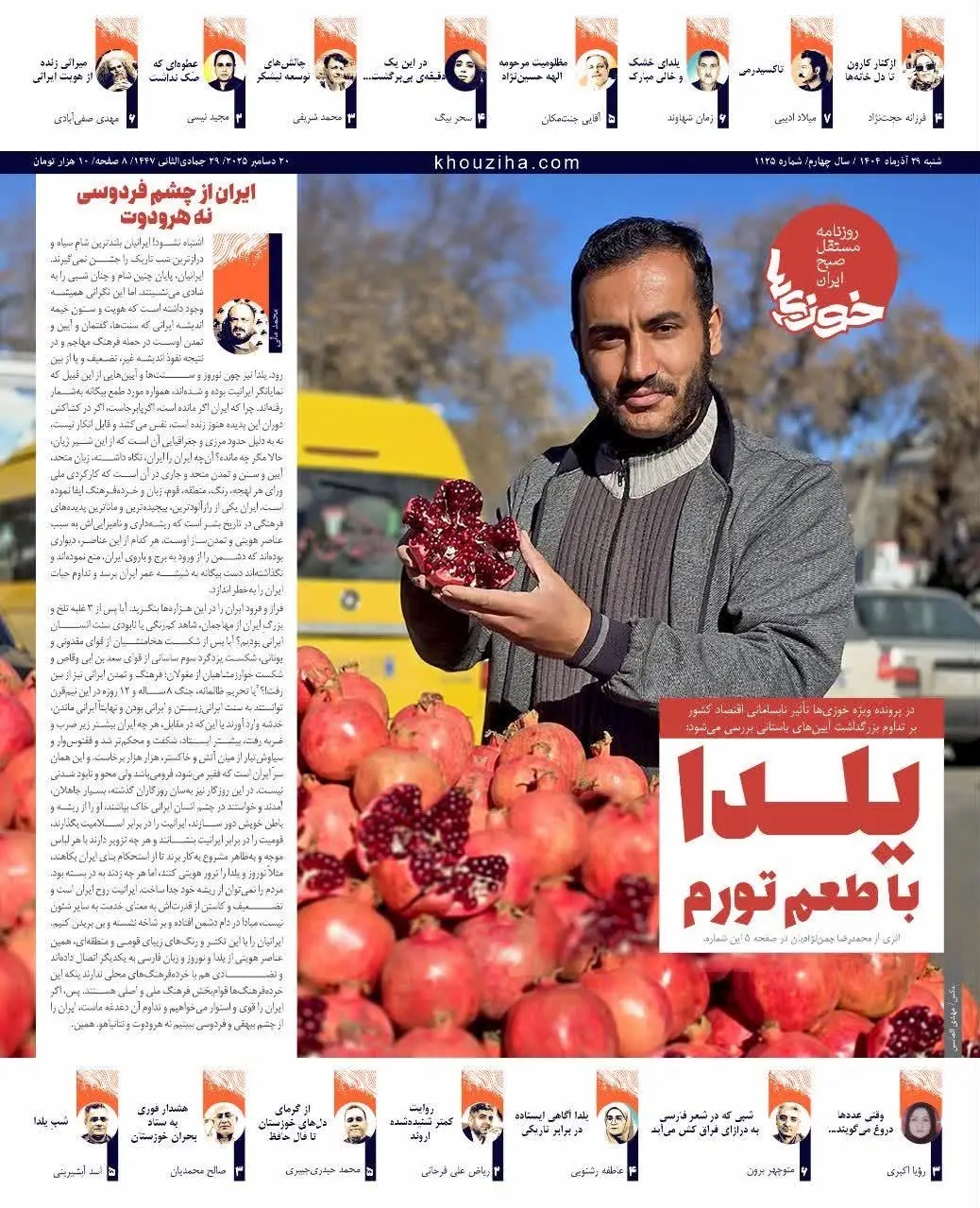تصاویر منتخب صفحات نخست روزنامههای استان خوزستان شنبه 29 آذرماه، روایتگر مهمترین رویدادها و تحولات اجتماعی، سیاسی و اقتصادی این منطقه است.