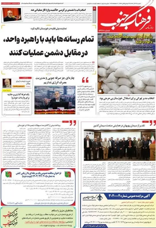 منتخب صفحات نخست روزنامهها به مخاطبان این امکان را میدهد که در یک نگاه، مهمترین مطالب و تیترهای خبری استان خوزستان را مرور کنند و تصویر جامعی از اولویتها و دغدغههای رسانهای روز را به دست آورند.