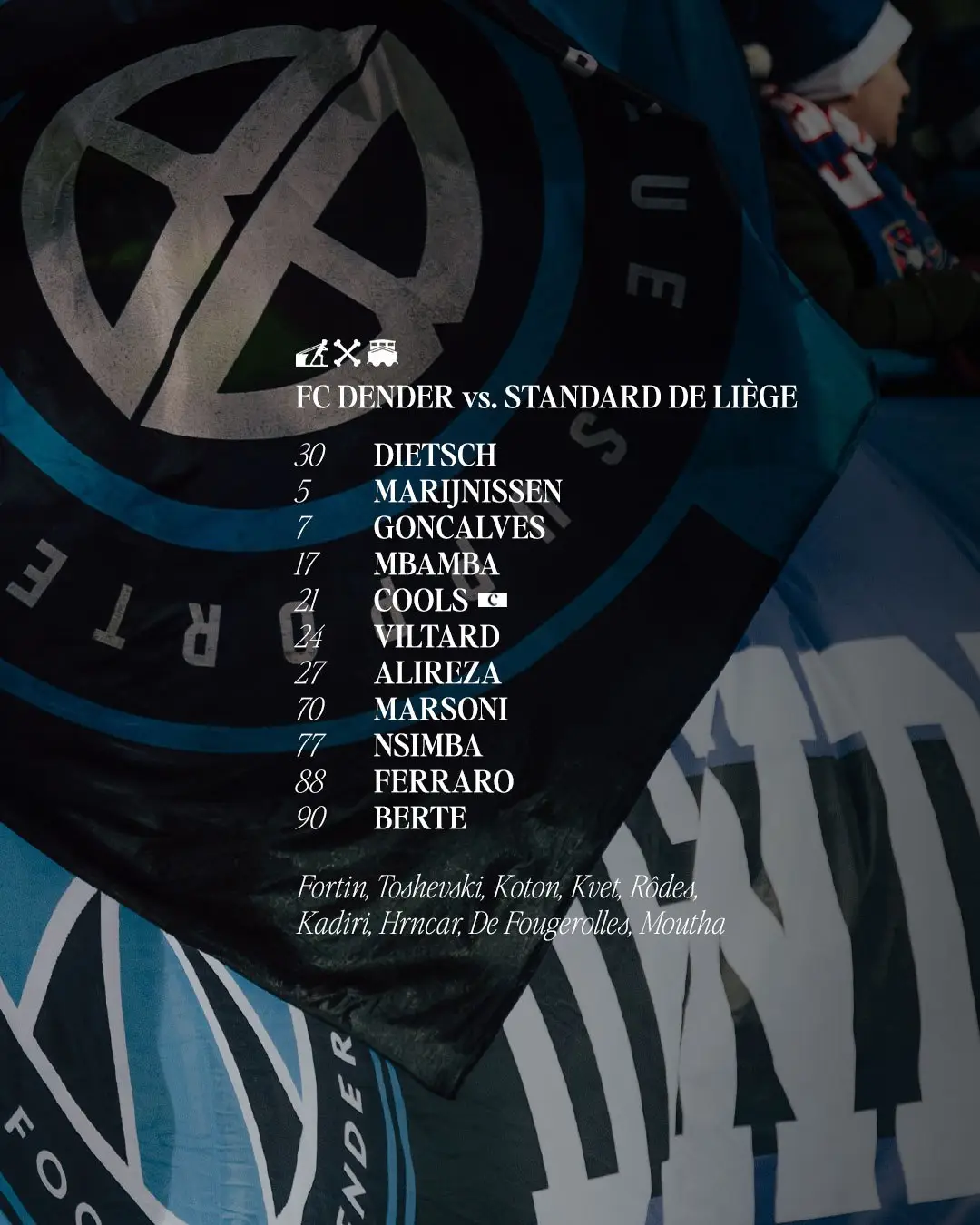 کاپیتان تیم ملی ایران که در دوران حضورش در دندر فقط یکبار در مرحله یکهشتم نهایی جام حذفی بلژیک مقابل استاندارد لیژ در ترکیب قرار گرفته و نقش مهمی در برتری تیمش داشته، امشب هم از ابتدا برابر تیمی که دنیس اکرت، مهاجم ایرانی الاصل را در جمع نفرات اصلی دارد، دیده میشود.