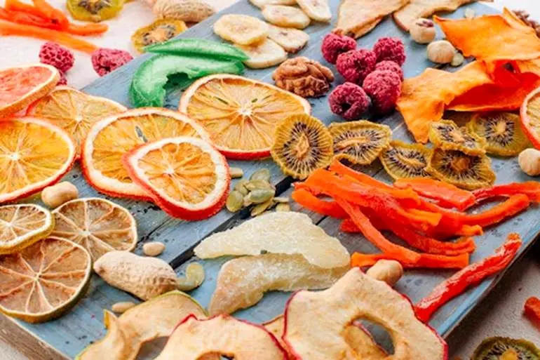 میوه خشک حاصل فرایند خشککردن میوههای تازه است که طی آن بخش زیادی از آب میوه گرفته میشود؛ اما مواد مغذی، فیبر و طعم طبیعی آن تا حد زیادی حفظ خواهند شد. برخلاف چیپس میوه که تهیه آن معمولا با حرارت بالا یا سرخکردن انجام میگیرد و ممکن است حاوی شکر یا افزودنی باشد، میوه خشک بدون روغن و با حداقل فرآوری تولید میشود؛ به دلیل همین تفاوت در روش تهیه، میوه خشک سالمتر است و ارزش غذایی بیشتری نسبت به بسیاری از تنقلات آماده دارد.