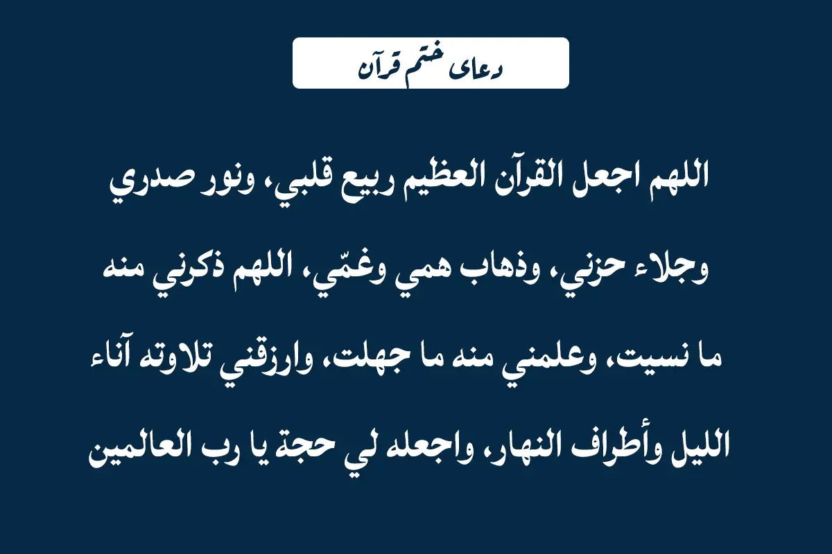 اَللَّهُمَّ إِنَّكَ أَعَنْتَنِي عَلَى خَتْمِ كِتَابِكَ الَّذِي أَنْزَلْتَهُ نُوراً