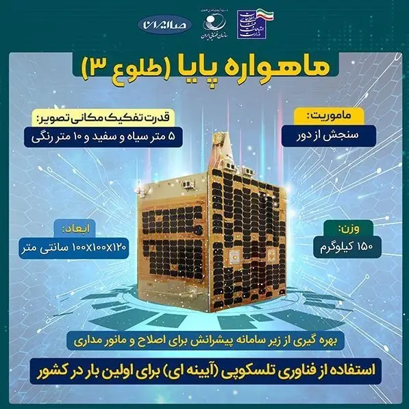 ماهواره پایا (طلوع 3) به سفارش سازمان فضایی ایران و توسط شرکت صنایع الکترونیک ایران طراحی و ساخته شده است.