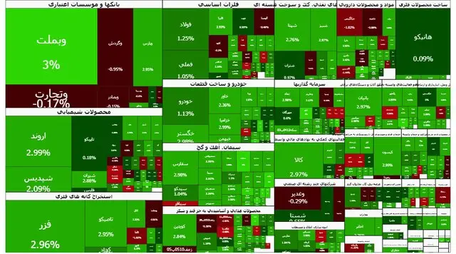 همچنین ۶۱۷ هزار فقره معامله به ارزش حدود ۱۸ هزار میلیارد تومان در بازار سهام انجام شد.