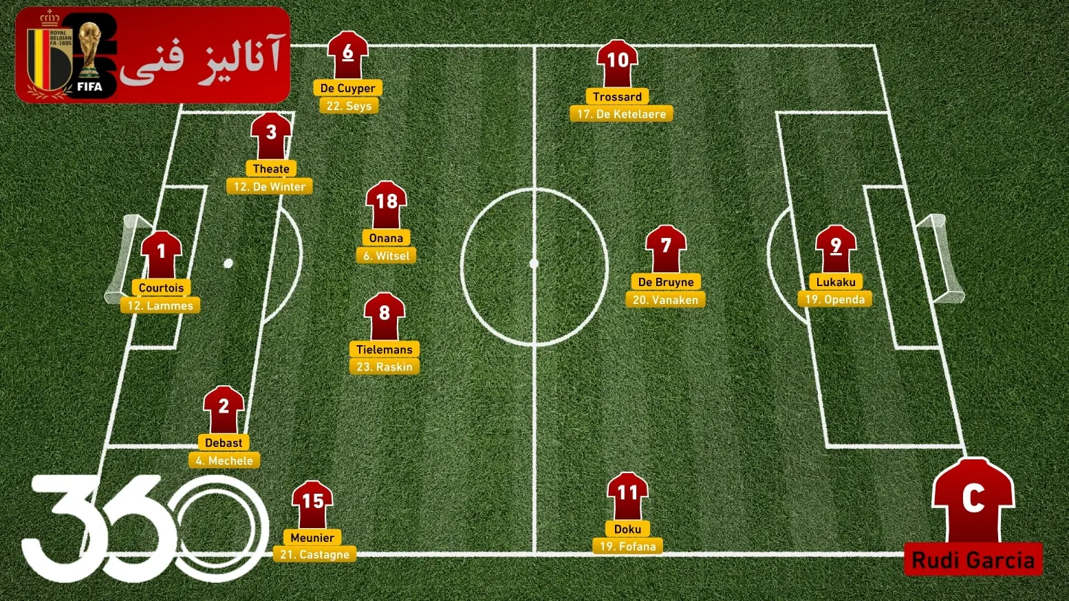 این تیم از خط دروازه تا نوک حمله، علاوه بر داشتن بازیکنانی با با کیفیت در تمامی خطوط، صاحب ستارگان جایگزین بسیار خوبی هم هست. آنها در خط هافبک و در صورت نداشتن نفراتی مثل آمادو اونانا و یوری تیلمانس که آشنایی بسیار خوبی از بازی یکدیگر در استونویلا دارند، میتواند از بازیکنان باتجربهای مثل اکسل ویتسل استفاده کند. دو بازیکن تکنیکی و سریع در هر گوشه از زمین برای این تیم آماده هستند. از طرفی تیموتی کاستانیه نیز به دلیل قابلیت بازی در هر دو طرف، تنوع تاکتیکی و ایدههای تعویضی رودی گارسیا را بسیار افزایش میدهد. هانس واناکن و لوئیس اوپندا هم ستارگانی هستند که در صورت غیبت کوین دیبروین و روملو لوکاکو، میتوانند وزنه خط حمله را به سود تیم ملی بلژیک نگه دارند.