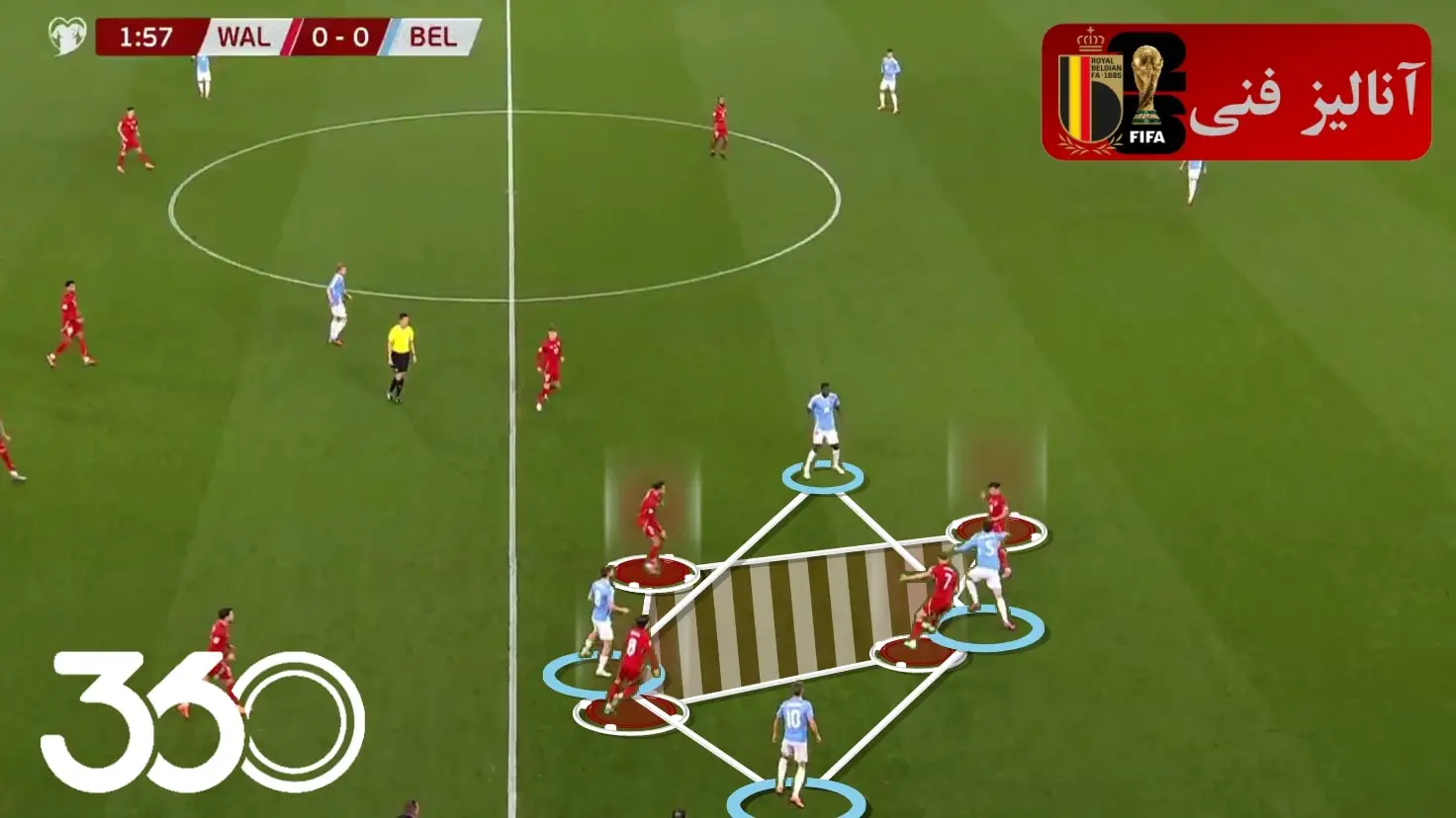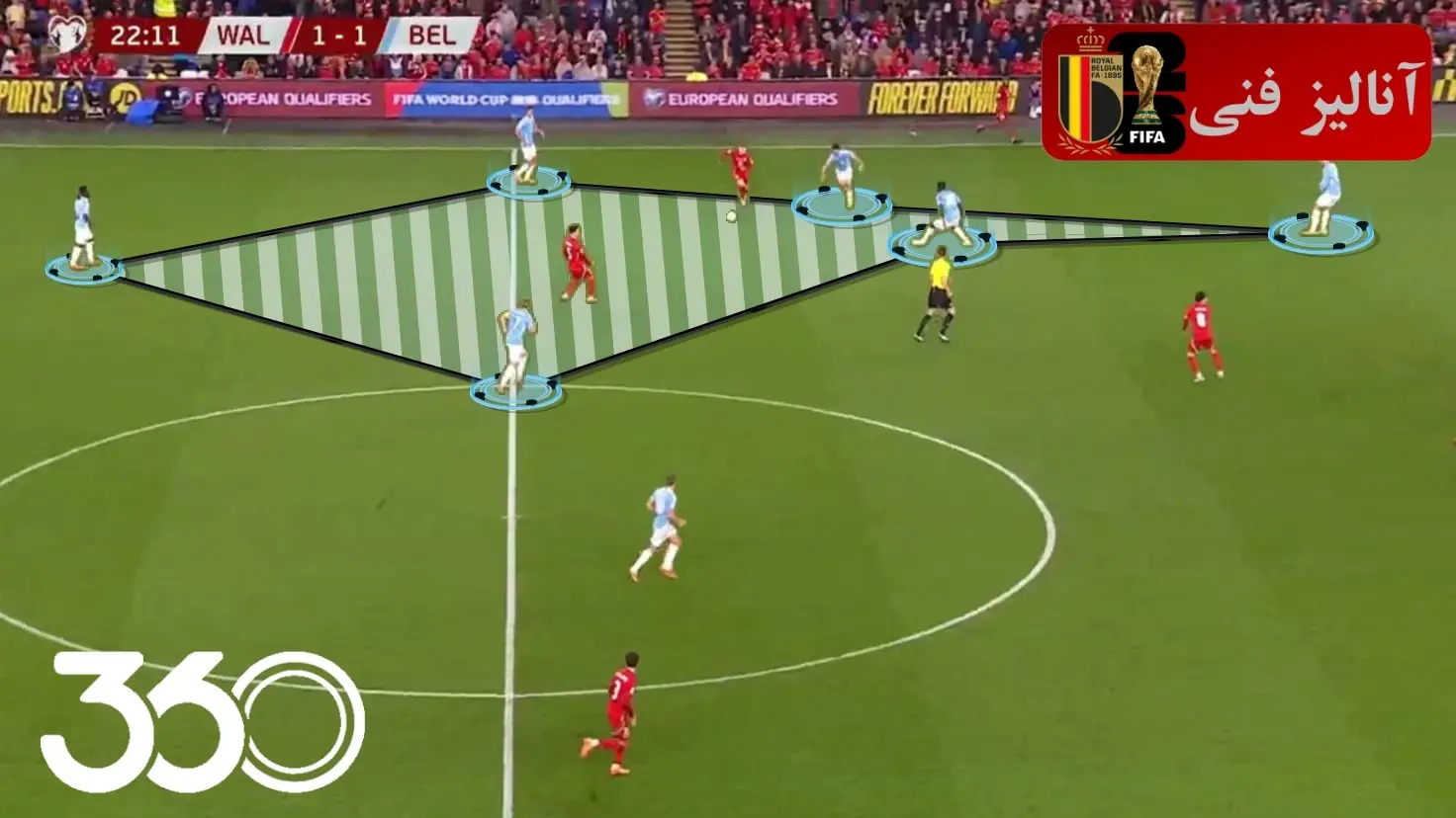 در دفاع هم این علاقه از سوی گارسیا کاملاً مشخص است. جایی که ولز سعی میکند همانند بلژیک از لب خط، انتقال خود را آغاز کند اما بلژیک با داشتن 4 تا 6 نفر در این منطقه، فضا را برای بازیکن صاحب توپ کوچک میکرد و اجازه جلوتر رفتن را به آنها نمیداد.
