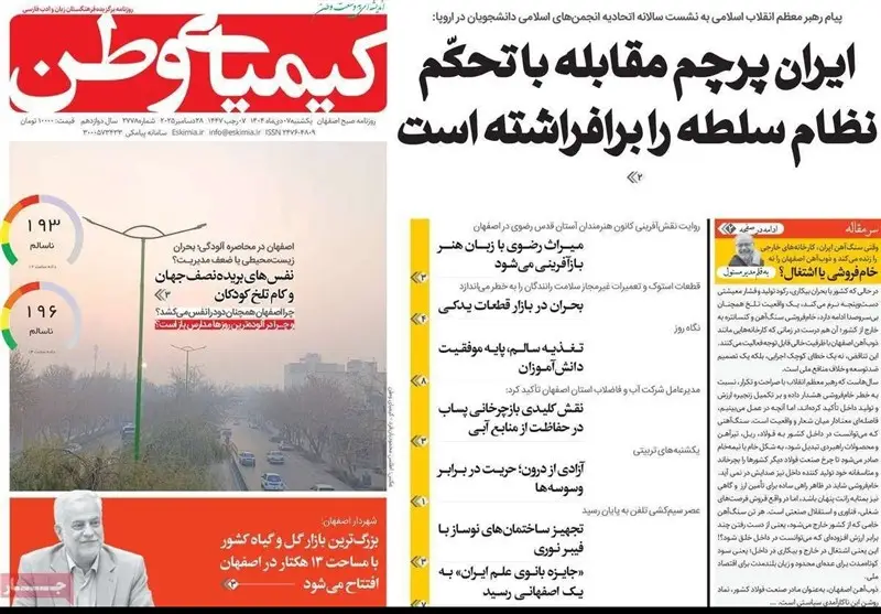 در شماره امروز روزنامههای استان اصفهان، پیچیدگی نسخه مازوت کمگوگرد به عنوان یکی از موضوعات مهم اقتصادی و محیط زیستی برجسته شده است؛ نگاهی ویژه به مهمترین رویدادهای اجتماعی و سیاسی منطقه.