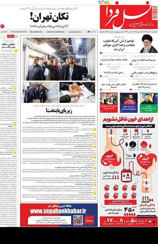 به گزارش نمابان و به نقل از خبرگزاری تسنیم از اصفهان، تصاویر منتخب صفحات نخست روزنامههای یکشنبه 7 دی در استان اصفهان منتشر شد. این صفحات نخست، نمایانگر مهمترین اخبار، تحولات و رویدادهای اجتماعی، سیاسی، اقتصادی و فرهنگی استان و کشور هستند و نگاه رسانهها را به مسائل روز اصفهان منعکس میکنند.