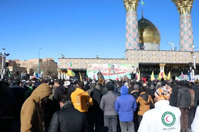 در این آیین که با حضور گسترده اقشار مختلف مردم از جمله خانوادههای شهدا، ایثارگران، جوانان، دانشآموزان، فرهنگیان، اصناف و مسئولان همراه بود، شرکتکنندگان با سر دادن شعارهای انقلابی، بر حفظ وحدت ملی، تبعیت از رهبری و صیانت از دستاوردهای انقلاب تأکید کردند.