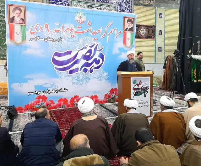 مسئول امور مساجد ملایر با اشاره به حماسه ۹ دی، این حضور گسترده مردمی را «تجدید بیعت با آرمانهای امام راحل(ره) و اعلام حمایت قاطع از مقام معظم رهبری» توصیف کرد.