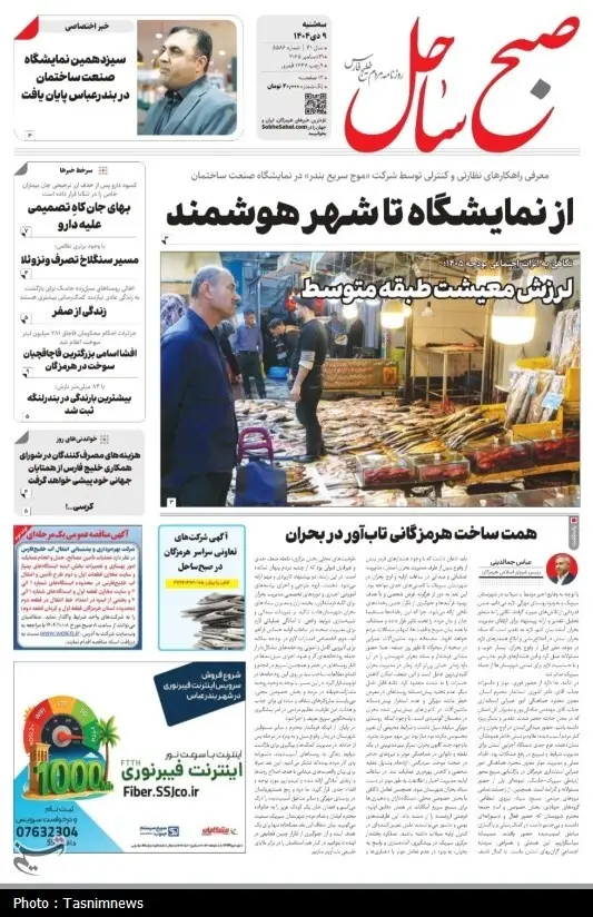 به گزارش نمابان و به نقل از خبرگزاری تسنیم از بندرعباس، تصاویر و تیترهای برگزیده صفحات نخست روزنامههای در استان هرمزگان در 9 دی ماه شامل صبح ساحل، دریا و ندای هرمزگان منتشر شد، این مرور مطبوعاتی بازتابدهنده مهمترین رویدادها، چالشها و تحولات اقتصادی، اجتماعی و زیستمحیطی استان است.