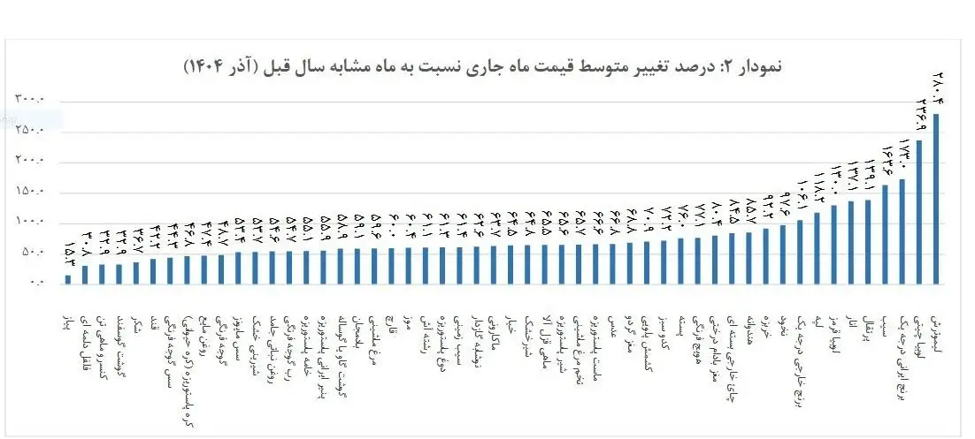 همچنین براساس گزارش این مرکز قیمت لیموترش به نسبت ماه مشابه در سال گذشته بیشاز 280 درصد رشد داشته است و بیشترین رشد قیمتی را در میان اقلام خوراکی در طول یکسال داشته است؛ همچنین قیمت لوبیا چیتی با افزایش 236 درصدی به نسبت ماه مشابه در سال گذشته دومین کالا با بیشترین رشد قیمتی است.