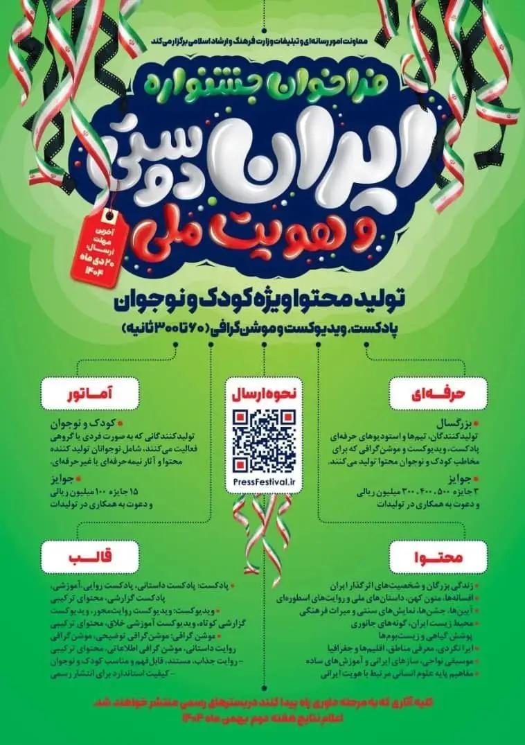 معاونت امور رسانهای و تبلیغات وزارت فرهنگ و ارشاد اسلامی فراخوان تولید پادکست و ویدیوکست با محور «ایراندوستی و هویت ملی» را با تمرکز بر محتوای ویژه کودک و نوجوان منتشر کرد.