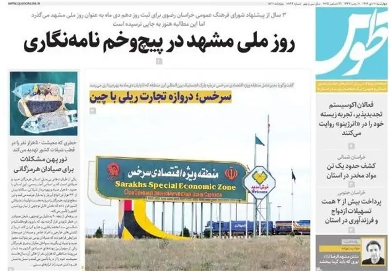 تصاویر منتخب صفحات نخست روزنامههای چهارشنبه 10 دی ماه در استان خراسان جنوبی منتشر شد.